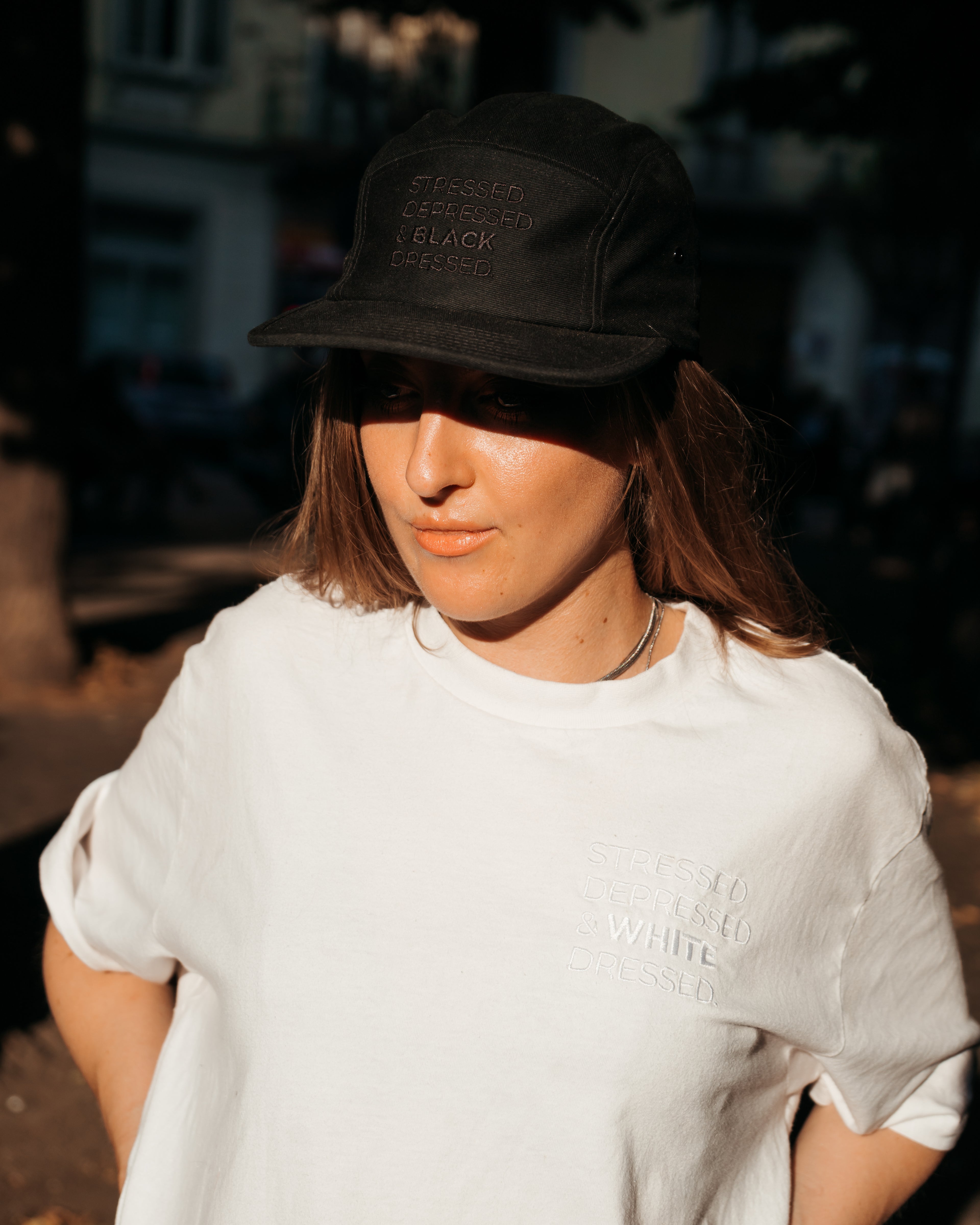 Stressed, Depressed & Black Dressed - 5 Panel Hat- Black on black